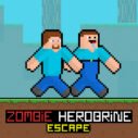 In our adventure, we need to escape in the best way possible to survive. Zombie Herobrine is chasing us, and we really need to get away from him. You must escape from that terrifying monster. Run from the zombie with your friend. The zombie is chasing you very quickly. Never look back and dont stop running. Be very careful on this obstacle course road. Watch out for the monsters, be careful. The monsters are advancing in a frightening manner everywhere. The monsters are chasing us; escape with your friend without dying and dont look back.